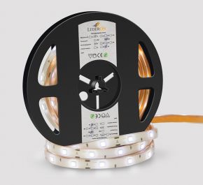 Светодиодная лента класса А. Тип светодиода 5050, 30 светодиодов на метр. Напряжение 12V, мощность 7.2W. Класс защиты IP20. Катушка 5 метров. Лента предназначена для декоративной подсветки ниш и контурного освещения предметов интерьера. Она незаменима при решении сложных дизайнерских задач по световому оформлению торговых залов, ресторанов, баров, ночных клубов. Монтируется на поверхность с помощью двустороннего скотча 3М.